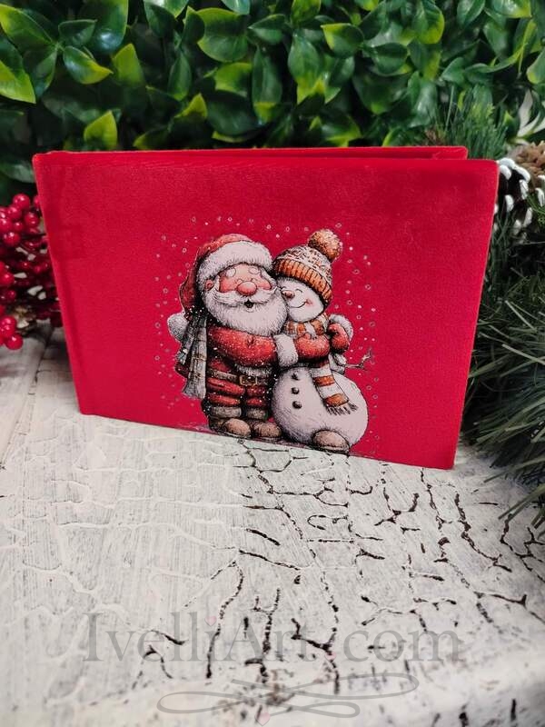 Погрижете се за своите най-съкровени спомени от коледните празници и ги съхранете по красив начин. Ръчно изработен мини фотоалбум от лимитирана празнична серия "Споделена Коледа". Изработен  от мек на допир кадифен велур в празнично червено с лускозна щампа. Албумът съдържа 10 страници твърд картон със самозалепващо покритие за 10 снимки в размер 10/15см. Компактните му размери го правят чудесен подарък за вашите близки и приятели и красив начин да запазите снимките си от коледна фотосесия.