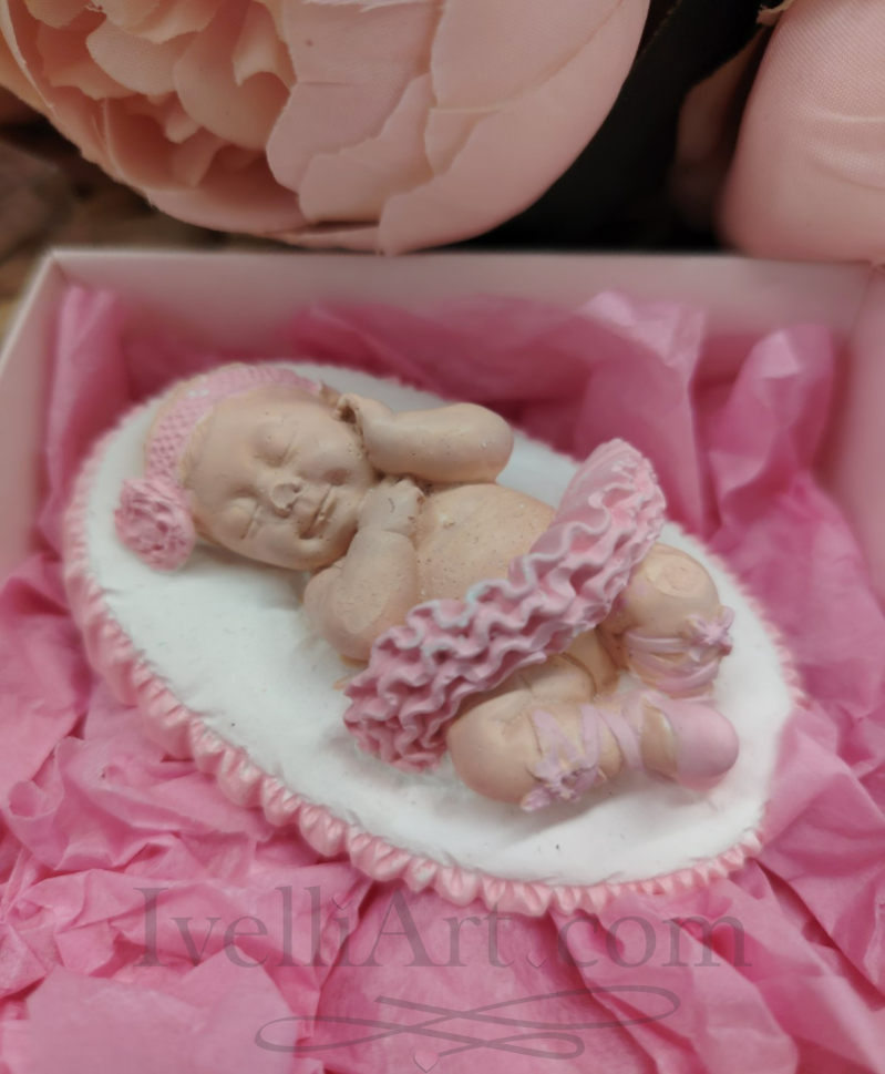 Нежна фигурка на Бебе Балерина в розови дрешки – стилен и персонализиран подарък за кръщене, погача или първи рожден ден. Изработен от качествен керамичен гипс и поднесен по елегантен начин-красив спомен за специалния ден.