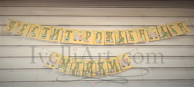 Ръчно изработен банер с името на Вашето дете. Представлява банер от флагчета с правоъгълна форма /200гр луксозен картон мат/ с красив закачлив дизайн. Подходящ начин да украсите дома по сличай рождения ден на вашето детенце. Посочената цена е за едно флагче. В количката се поставят толкова флагчета, колко букви следва да се изпише. Може да се изпише само име, „Честит празник+ име”, „Честито Кръщене +име” , "Стъпвай смело+ име", "Добре дошло у дома+ име" , "ДОБРЕ ДОШЪЛ" + име, "ДОБРЕ ДОШЛА"+име, "ЧЕСТИТ РОЖДЕН ДЕН + ИМЕ" или надпис по Ваше желание. Подходящ акцент за Вашето Кръщене, Погача, Прощъпулник, Рожден ден, бебешко парти.
